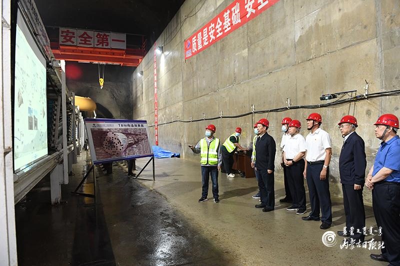 8月12日,自治區(qū)黨委書(shū)記、人大常委會(huì)主任石泰峰來(lái)到興安盟科右前旗察爾森鎮(zhèn)引綽濟(jì)遼2號(hào)隧洞輸水管線建設(shè)現(xiàn)場(chǎng),了解工程進(jìn)展情況。內(nèi)蒙古日?qǐng)?bào)記者 袁永紅 攝