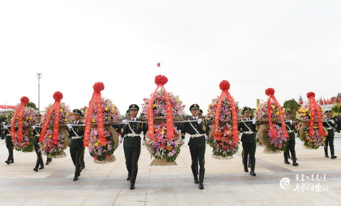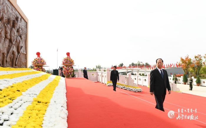 9月30日上午,烈士紀(jì)念日向人民英雄敬獻(xiàn)花籃儀式在呼和浩特隆重舉行。內(nèi)蒙古日?qǐng)?bào)社融媒體記者 袁永紅 攝