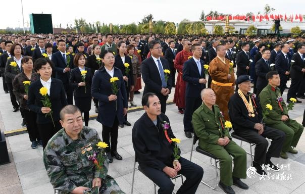 9月30日上午,烈士紀(jì)念日向人民英雄敬獻(xiàn)花籃儀式在呼和浩特隆重舉行。圖為老戰(zhàn)士、老同志和烈士親屬參加向人民英雄敬獻(xiàn)花籃儀式。 內(nèi)蒙古日?qǐng)?bào)社融媒體記者