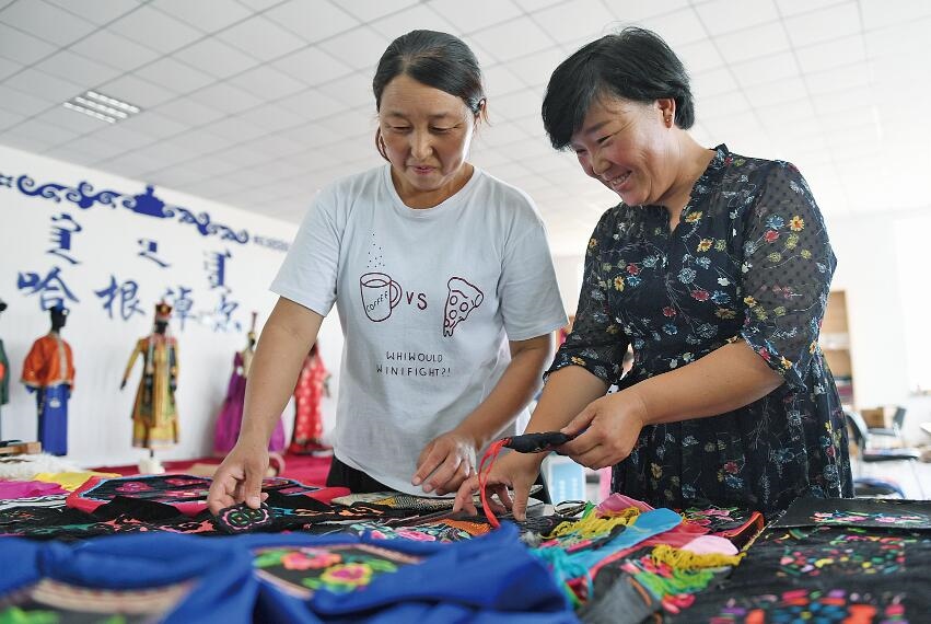 2019年8月,通遼市科左中旗哈根廟嘎查依托傳統(tǒng)手工藝通遼刺繡的資源優(yōu)勢,成立了皮毛絨刺繡專業(yè)合作社,對當(dāng)?shù)剞r(nóng)牧民和貧困戶免費(fèi)培訓(xùn)指導(dǎo),學(xué)成后提供崗位,實(shí)現(xiàn)在家門口就業(yè)。