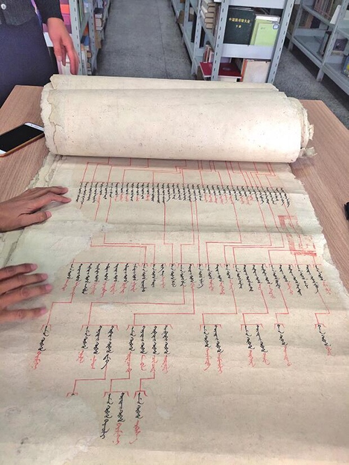 內(nèi)蒙古社會科學院圖書館館長王智說:“這里的寶貝有很多,經(jīng)書、圣旨、家譜,種類豐富且保存較為完整。館內(nèi)現(xiàn)有藏書26萬冊,包括漢文、蒙古文、滿文、外文等各類圖書。其中,蒙古文古籍6280種3萬余冊,約占全國各圖書館蒙古文古籍收藏種類的50%,且多為木刻原版或手抄本。單是這一個數(shù)字,就是其它圖書館無法匹及的?!?/p>