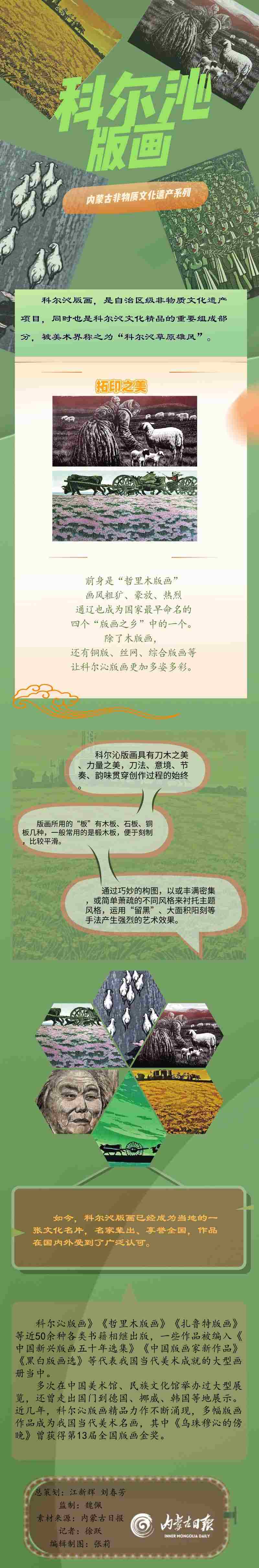 中國(guó)木刻版畫(huà)已有上千年史,自二十世紀(jì)三十年代起,創(chuàng)作版畫(huà)經(jīng)魯迅先生提倡后取得了巨大發(fā)展。內(nèi)蒙古科爾沁版畫(huà)繼承發(fā)揚(yáng)中國(guó)版畫(huà)的精髓,兼收并蓄,創(chuàng)新發(fā)展,以雄渾、純樸、大氣、高雅而著稱(chēng),具有鮮明的草原特色。