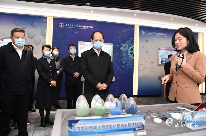 4月22日,自治區(qū)黨委書(shū)記、人大常委會(huì)主任石泰峰,與參加自治區(qū)推動(dòng)高質(zhì)量發(fā)展重大項(xiàng)目建設(shè)動(dòng)員大會(huì)的代表一起觀摩上海交通大學(xué)包頭材料研究院及產(chǎn)業(yè)園。內(nèi)蒙古日?qǐng)?bào)社融媒體記者 袁永紅 攝