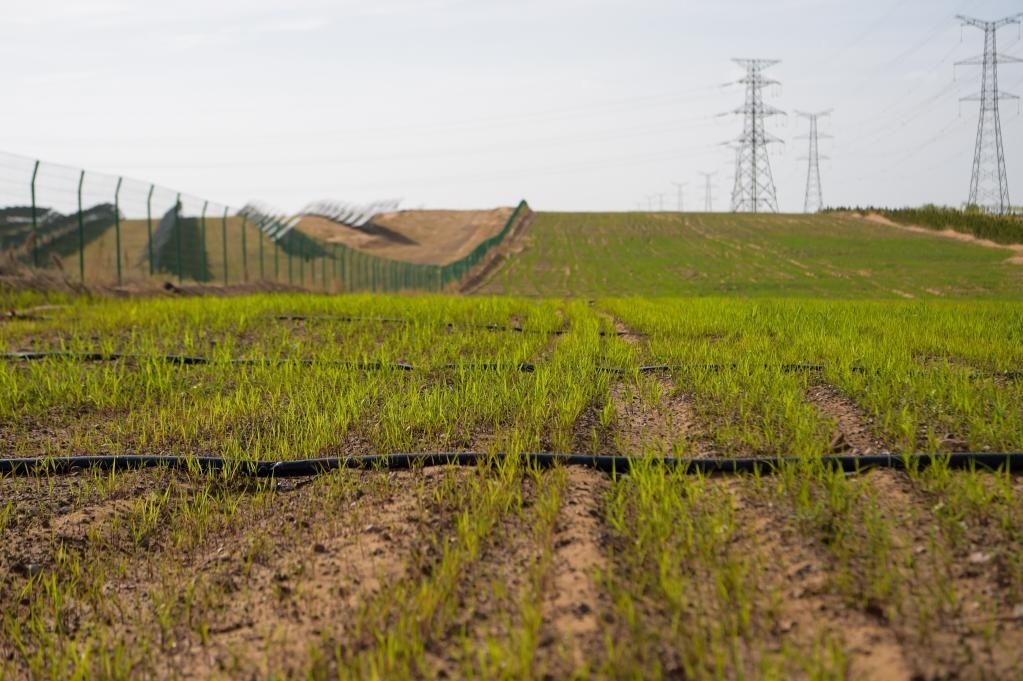 作為綠能碳匯(集團(tuán))有限公司綜合部部長(zhǎng),馬天景和他的團(tuán)隊(duì)一直關(guān)注著這些幼苗的長(zhǎng)勢(shì)?!斑@些牧草都是今年夏天剛剛試驗(yàn)種植的,目的是檢驗(yàn)不同品種的越冬能力,為明年推廣種植積累經(jīng)驗(yàn)?!瘪R天景說(shuō),未來(lái)這些牧草都將供應(yīng)給光伏基地東側(cè)的肉牛標(biāo)準(zhǔn)化養(yǎng)殖場(chǎng)。