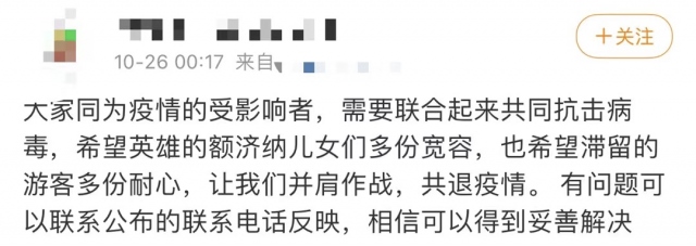 此前,內(nèi)蒙古額濟(jì)納旗文化旅游廣電局發(fā)布《致滯留在額濟(jì)納廣大游客朋友的一封信》,為滯留游客贈(zèng)送胡楊林旅游區(qū)(5A)等3個(gè)核心景區(qū)門票1張,自2021年起,三年內(nèi)可免費(fèi)游覽?! ?/p>