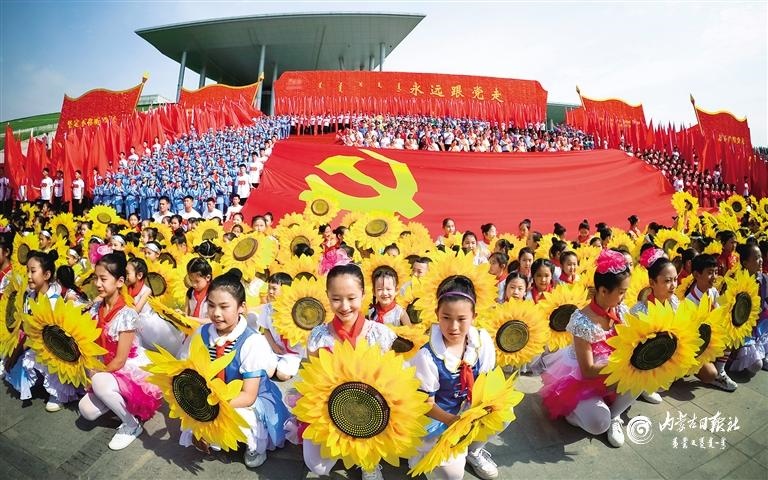 “永遠(yuǎn)跟黨走”——慶祝中國共產(chǎn)黨成立100周年內(nèi)蒙古自治區(qū)(呼和浩特地區(qū))群眾性文化活動(dòng)在呼和浩特市民族團(tuán)結(jié)寶鼎廣場(chǎng)啟動(dòng)。內(nèi)蒙古日?qǐng)?bào)社融媒體記者 王曉博 攝