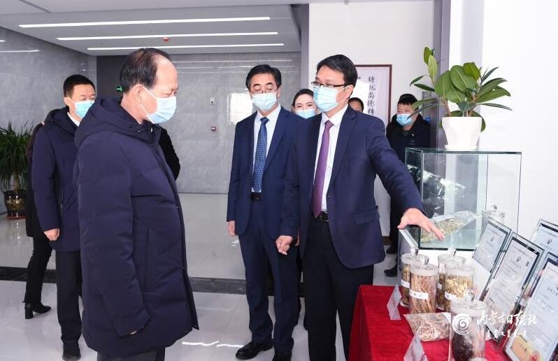 12月16日,自治區(qū)黨委書記、人大常委會(huì)主任石泰峰來到鄂爾多斯市高新技術(shù)開發(fā)區(qū),了解尚德艾康藥業(yè)項(xiàng)目建設(shè)研發(fā)情況。內(nèi)蒙古日?qǐng)?bào)社融媒體記者 袁永紅 攝