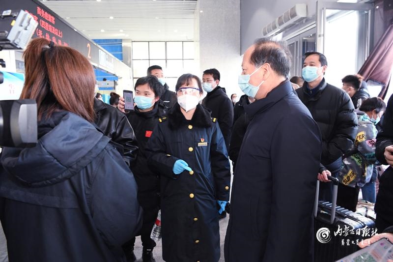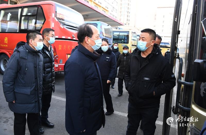 節(jié)假日期間人員流動(dòng)增加,做好疫情防控和交通出行保障非常重要。石泰峰來(lái)到呼和浩特火車站、長(zhǎng)途汽車站,看望慰問(wèn)一線工作人員,實(shí)地了解各項(xiàng)措施落實(shí)情況。通過(guò)車站自助驗(yàn)證通道后,石泰峰首先來(lái)到售票處,詢問(wèn)旅客購(gòu)票和出行情況,叮囑車站工作人員在節(jié)假日期間要實(shí)行網(wǎng)上預(yù)約購(gòu)票,避免人員聚集。在進(jìn)站口,石泰峰看到旅客掃碼后還需人工查驗(yàn)結(jié)果,他強(qiáng)調(diào),要優(yōu)化售票檢票等服務(wù)流程,充分運(yùn)用技術(shù)手段改進(jìn)旅客進(jìn)站檢查方式,切實(shí)堵塞工作漏洞。要嚴(yán)謹(jǐn)細(xì)致做好進(jìn)站測(cè)溫、驗(yàn)碼等防疫檢查,嚴(yán)格控制、科學(xué)調(diào)節(jié)客流量。要加強(qiáng)規(guī)范佩戴口罩、保持安全距離等防范措施提醒,引導(dǎo)旅客做好個(gè)人防護(hù)。在汽車站停車場(chǎng),石泰峰與司乘人員交談,深入了解車輛消殺、信息登記等情況。隨后,他乘坐地鐵2號(hào)線,調(diào)研疫情防控和市民出行情況。他強(qiáng)調(diào),要嚴(yán)格落實(shí)常態(tài)化交通運(yùn)輸疫情防控要求,認(rèn)真落實(shí)客運(yùn)場(chǎng)站和交通運(yùn)輸工具消毒通風(fēng)、設(shè)置隔離區(qū)等措施,加強(qiáng)客運(yùn)一線服務(wù)人員日常健康監(jiān)測(cè)和定期核酸檢測(cè),制定應(yīng)急預(yù)案,完善相關(guān)設(shè)施,讓群眾出行更加安全順暢舒心。