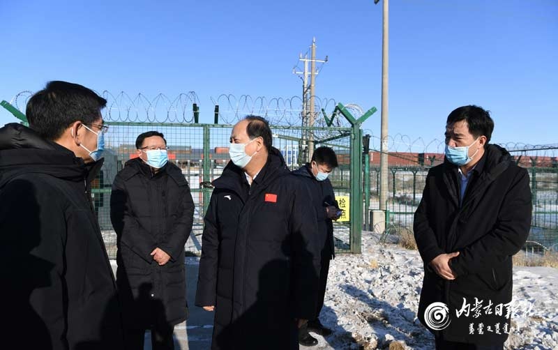 2月4日,自治區(qū)黨委書記、人大常委會主任石泰峰來到二連浩特市環(huán)宇物流園區(qū),了解疫情防控和作業(yè)運行情況。內(nèi)蒙古日報社融媒體記者袁永紅攝