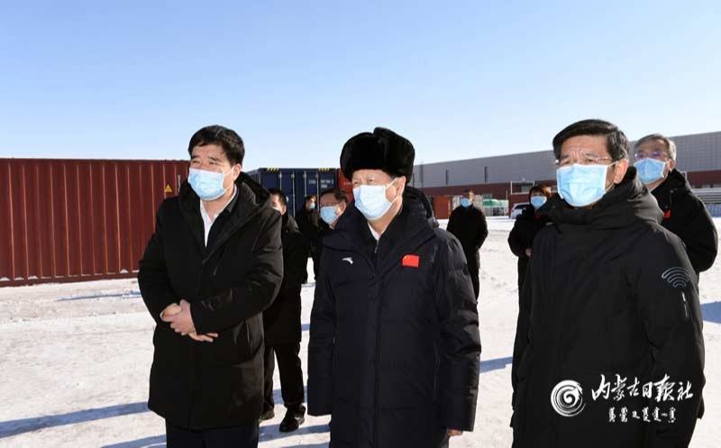 2月4日,自治區(qū)黨委書記、人大常委會主任石泰峰來到二連浩特市匯通物流園區(qū),了解疫情防控和作業(yè)運行情況。內(nèi)蒙古日報社融媒體記者袁永紅攝