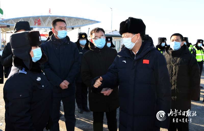 2月4日,自治區(qū)黨委書記、人大常委會主任石泰峰來到錫林郭勒盟二連浩特國道208卡口,了解人員、車輛出入檢查情況。內(nèi)蒙古日報社融媒體記者袁永紅攝