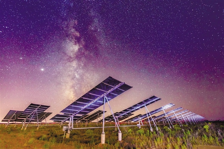 駿馬奔騰似潮涌,一日千里獨行空。庫布其沙漠腹地,由196320塊藍(lán)色光伏板組成的駿馬圖栩栩如生,格外吸睛。內(nèi)蒙古現(xiàn)代能源經(jīng)濟,一如這昂首奔騰的駿馬,向著“雙碳”目標(biāo)奮蹄疾馳。(記者 許曉嵐 康麗娜)