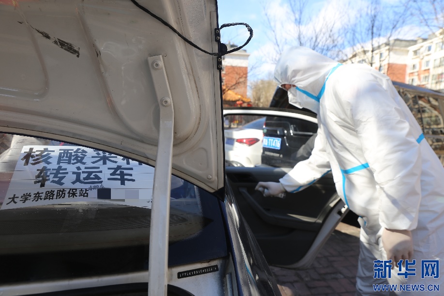 到達(dá)核酸采樣點(diǎn)后,籍東斌在工作人員取樣本間隙對(duì)車輛進(jìn)行消殺。核酸樣本轉(zhuǎn)運(yùn)存在著一定風(fēng)險(xiǎn)性,籍東斌說(shuō),只要按要求做好防護(hù),按規(guī)定完成工作,就沒什么問(wèn)題。新華網(wǎng)發(fā) 李倩攝