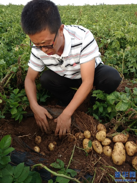 李亞平在查看馬鈴薯的生長(zhǎng)情況。新華網(wǎng)發(fā) (受訪者供圖)