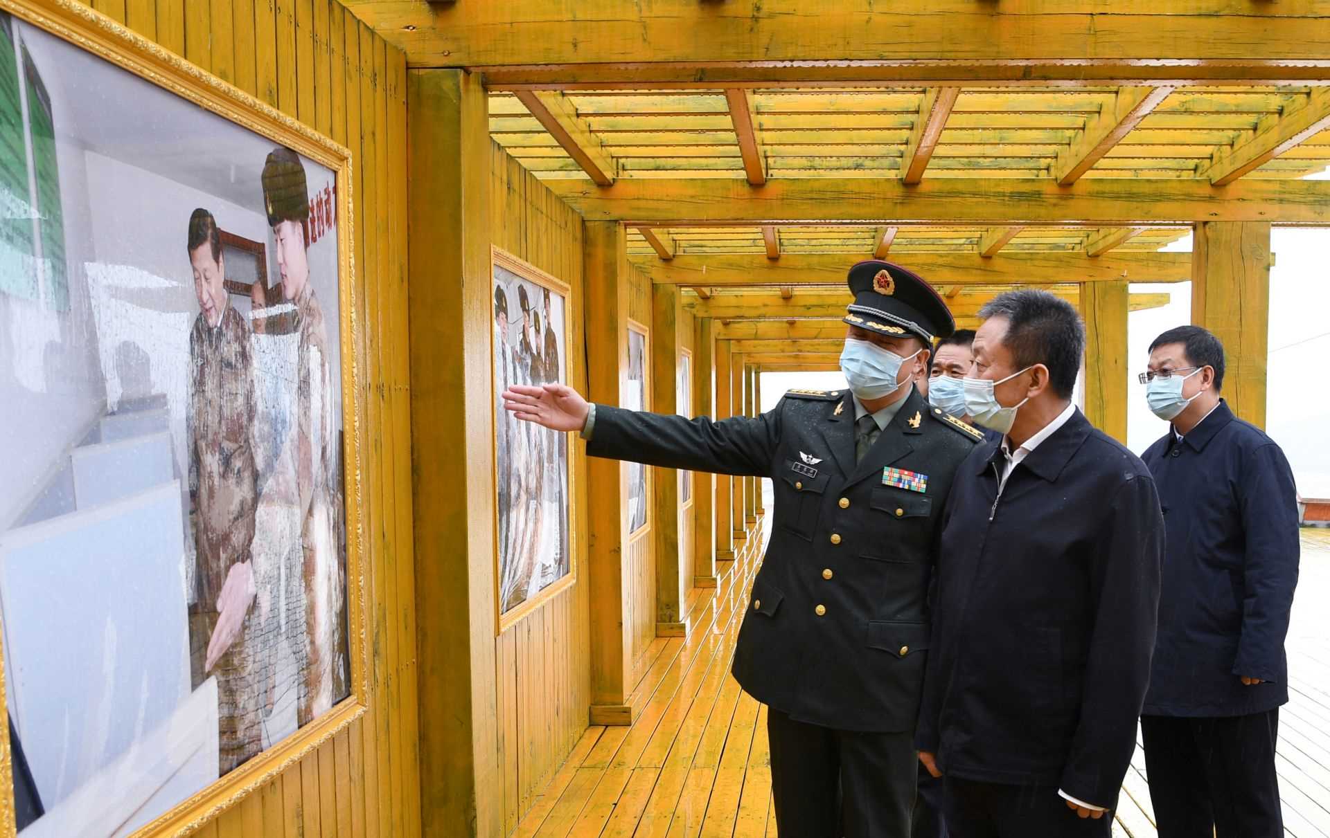 5月5日,自治區(qū)黨委書記孫紹騁參觀習近平總書記慰問情景再現(xiàn)長廊。記者袁永紅攝