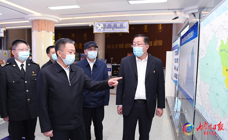 5月16日,自治區(qū)黨委書記孫紹騁來到策克口岸,詳細了解口岸建設和疫情防控情況。內(nèi)蒙古日報社融媒體記者 袁永紅 攝