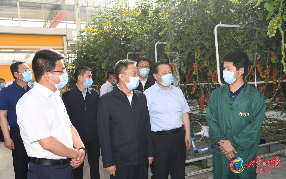 孫紹騁走進(jìn)宏福現(xiàn)代農(nóng)業(yè)產(chǎn)業(yè)園無(wú)土栽培番茄智能化溫室,詳細(xì)了解土地流轉(zhuǎn)、產(chǎn)品銷售、項(xiàng)目建設(shè)及帶動(dòng)就業(yè)等情況。內(nèi)蒙古日?qǐng)?bào)社融媒體記者袁永紅攝