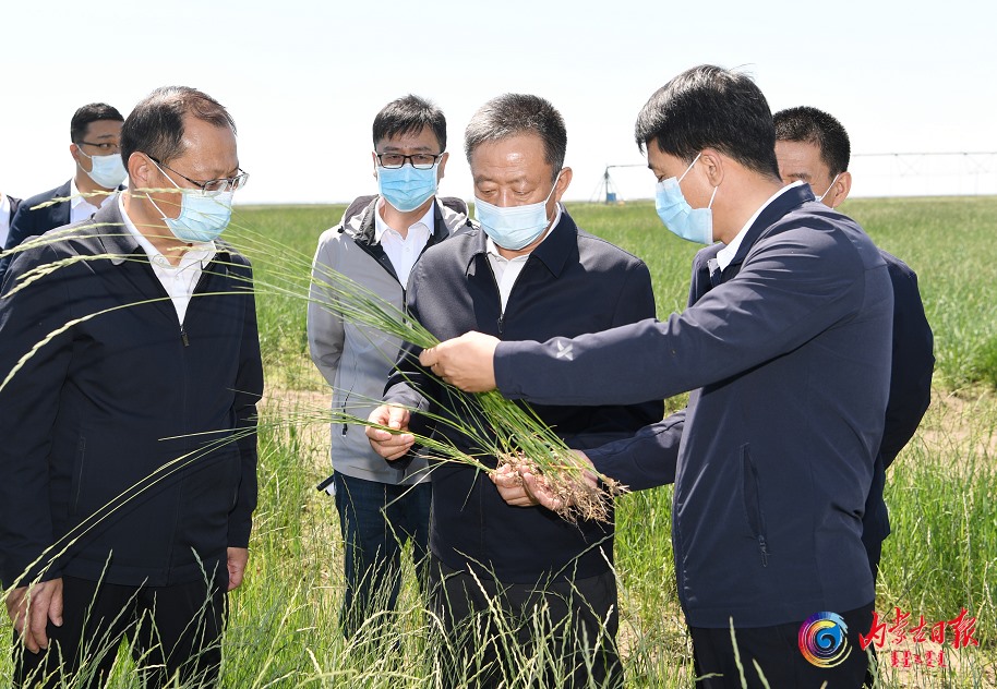 6月18日,自治區(qū)黨委書記孫紹騁在呼倫貝爾市陳巴爾虎旗羊草擴(kuò)繁基地調(diào)研。內(nèi)蒙古日報(bào)社融媒體記者 袁永紅 攝