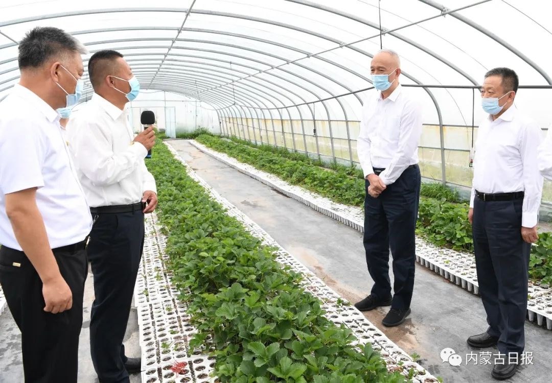 7月22日,北京市黨政代表團在錫林郭勒盟太仆寺旗考察調(diào)研。圖為北京市黨政代表團在太仆寺旗寶昌鎮(zhèn)邊墻村,察看特色農(nóng)產(chǎn)品育苗、種植情況。記者袁永紅攝