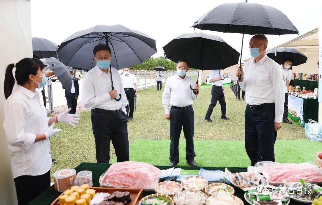 7月22日,北京市黨政代表團在錫林郭勒盟太仆寺旗考察調(diào)研。圖為北京市黨政代表團在太仆寺旗寶昌鎮(zhèn)邊墻村,察看農(nóng)產(chǎn)品展示。記者袁永紅攝