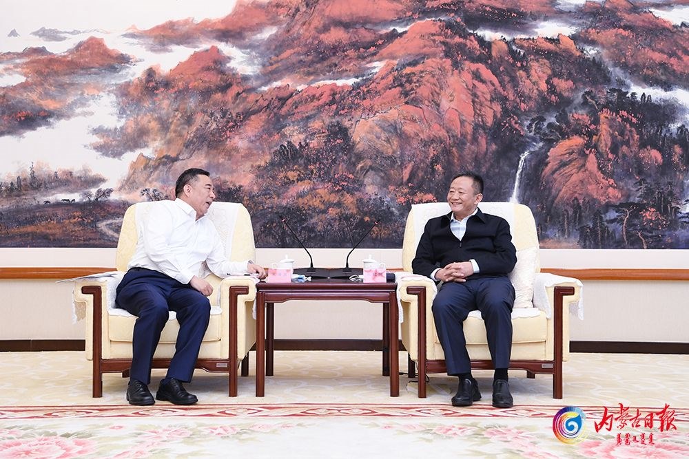 8月31日上午,自治區(qū)黨委書記孫紹騁在呼和浩特會見中國能源建設(shè)集團(tuán)有限公司董事長宋海良一行。內(nèi)蒙古日報社融媒體記者袁永紅攝