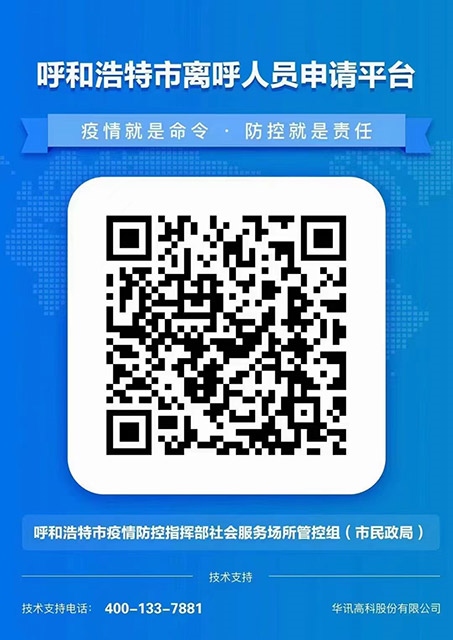 為進一步優(yōu)化工作流程,方便離呼人員申請,加快審核速度,市民政局與華訊高科股份有限公司合作開通了《呼和浩特市離呼人員申請平臺》,離呼人員可通過掃描二維碼或鏈接填報申請,平臺將根據(jù)審核結(jié)果自動發(fā)放報告,進一步方便群眾辦理離呼手續(xù)。平臺已于11月1日上午10時正式開通。同時,前期公布的郵箱將不再接收新的申報材料。