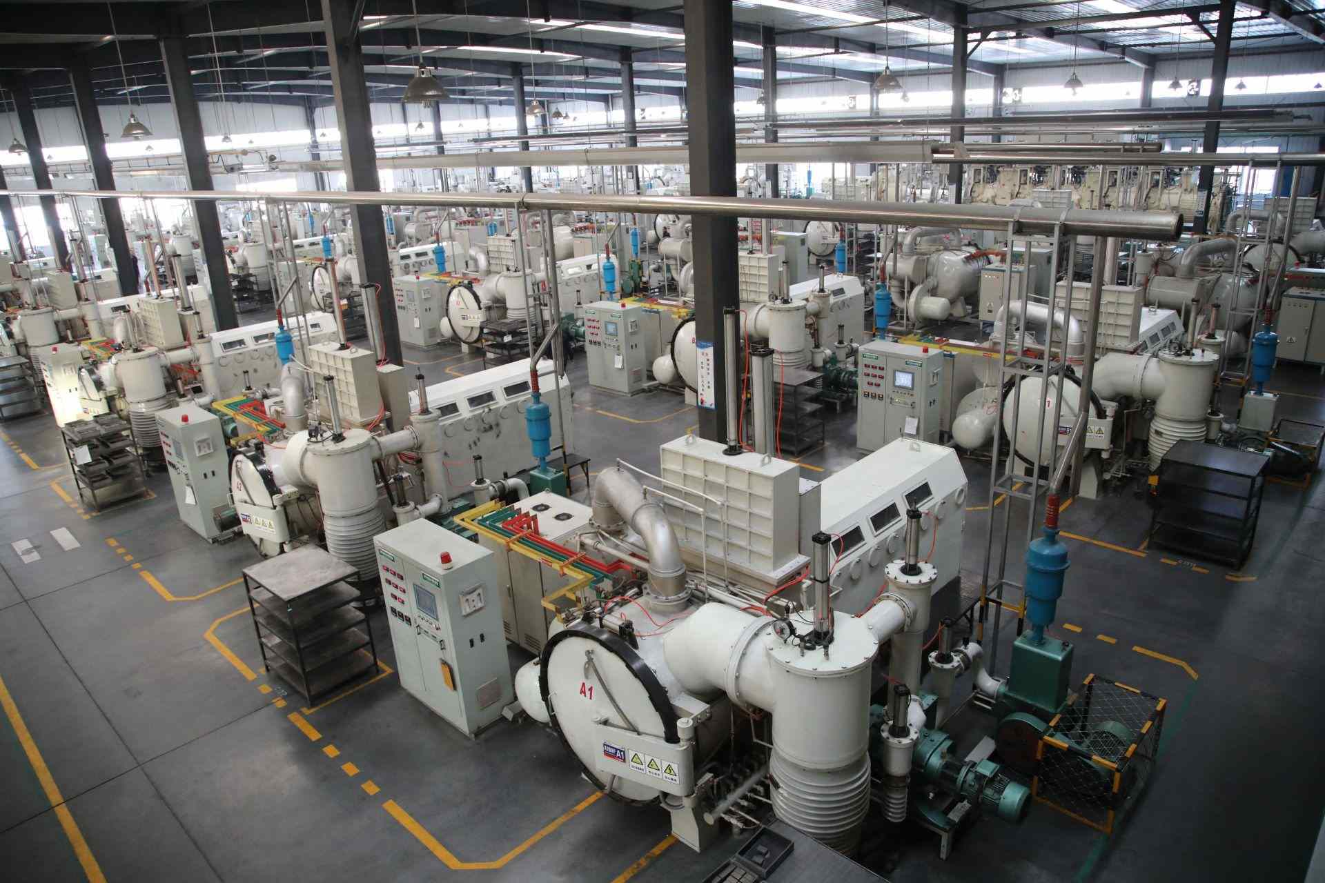 在包頭市稀土高新區(qū)大地熊(包頭)永磁科技有限公司生產(chǎn)車(chē)間內(nèi),技術(shù)人員查看設(shè)備運(yùn)行情況。
