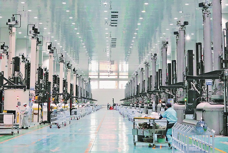 內(nèi)蒙古與時(shí)俱進(jìn)優(yōu)化能源資源開(kāi)發(fā)利用方式,推動(dòng)由化石能源大區(qū)向清潔能源大區(qū)轉(zhuǎn)變。圖為位于包頭市的雙良光伏產(chǎn)業(yè)園單晶硅生產(chǎn)車間(2022年10月20日攝)。
