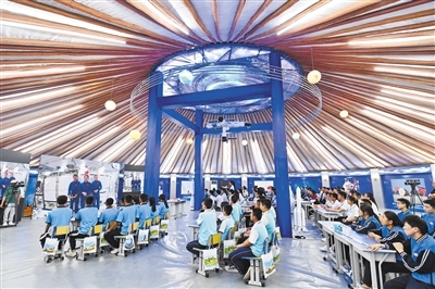 9月21日,120名中學生在阿拉善盟額濟納旗蒙古包地面課堂與空間站“同頻共振”,聆聽來自太空的聲音。內蒙古日報社融媒體記者 王磊 攝