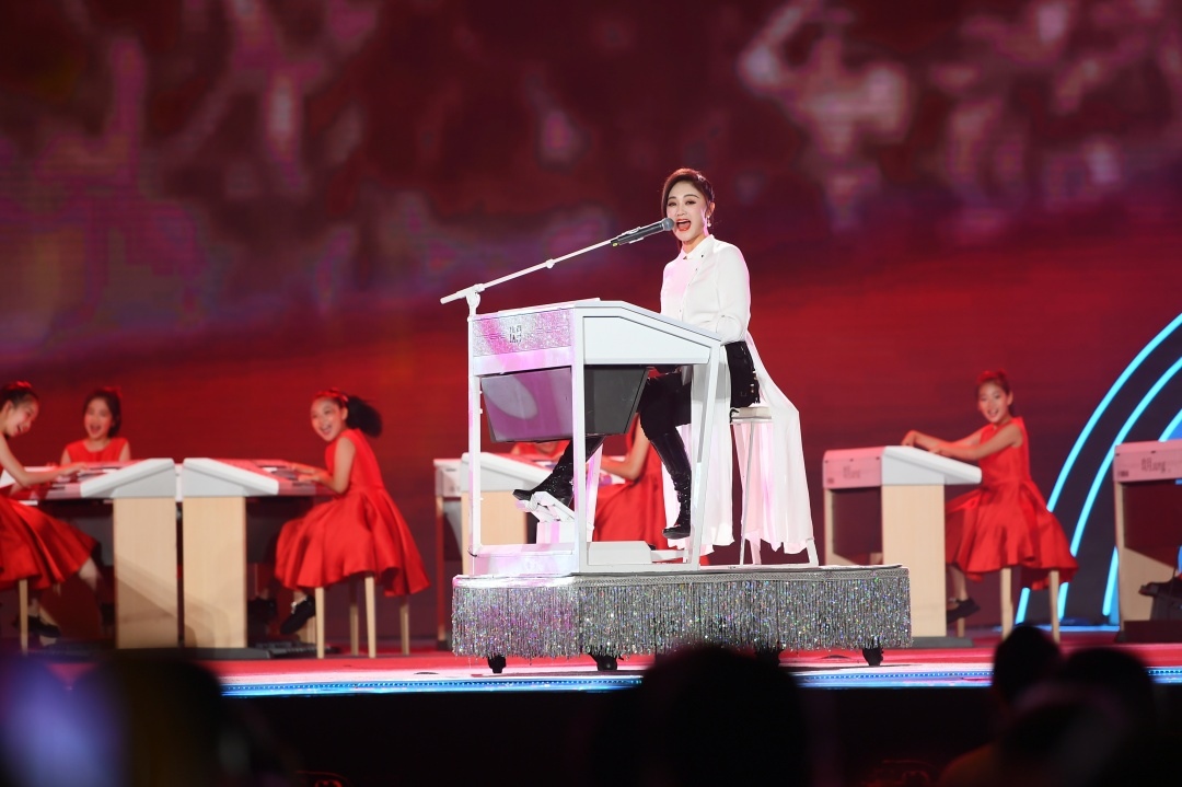 一臺可以腳踏的鋼琴是《玖月奇跡》給人最為深刻的印象,今天這架鋼琴來到了草原文化節(jié)的現(xiàn)場,動感的旋律,高亢的嗓音配合著極具節(jié)奏感的彈奏給人以深刻的印象,這樣的表演方式獨樹一幟,能到現(xiàn)場一睹風采的觀眾都非常幸運。