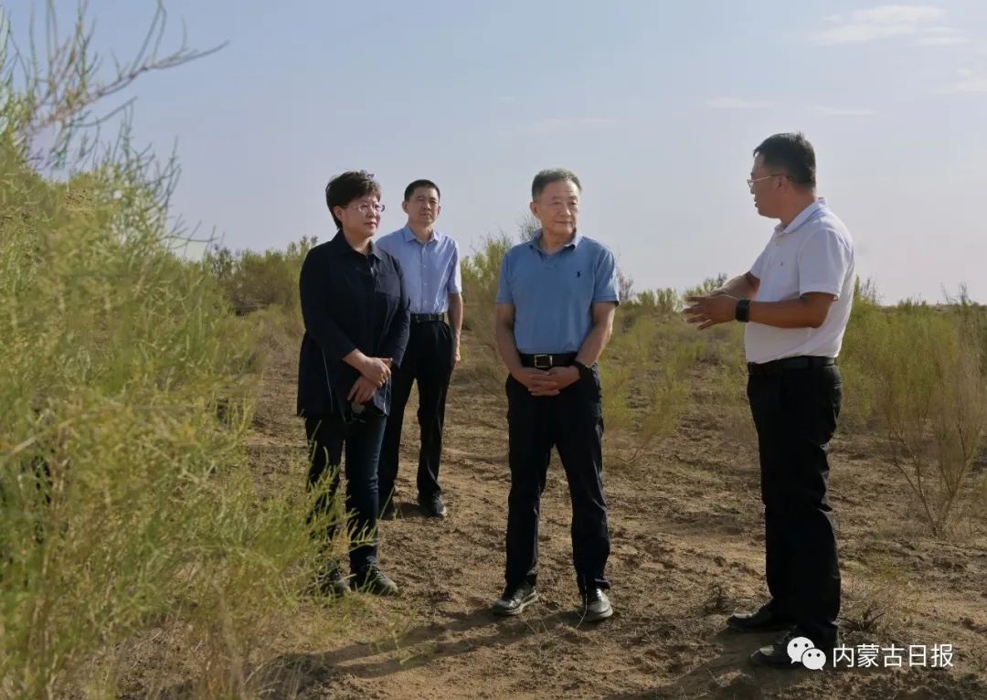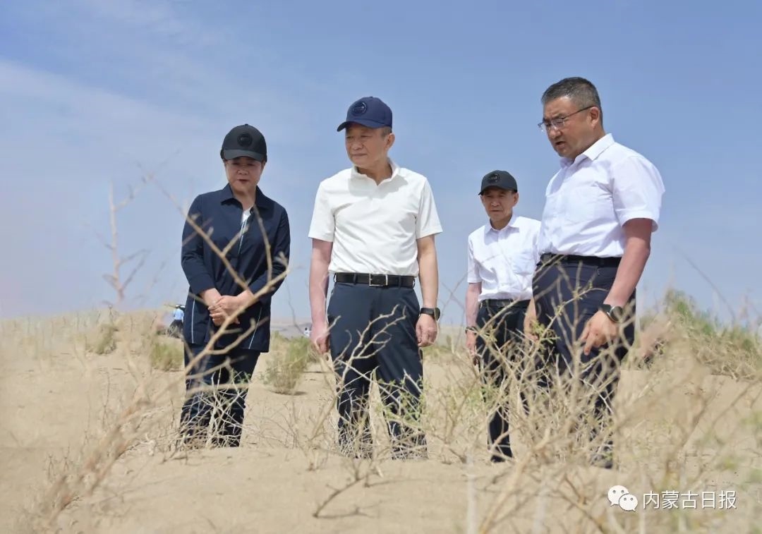 8月2日,自治區(qū)黨委書記孫紹騁在阿拉善左旗騰格里沙漠東緣調(diào)研防風(fēng)生態(tài)林建設(shè)情況。記者馬建荃攝