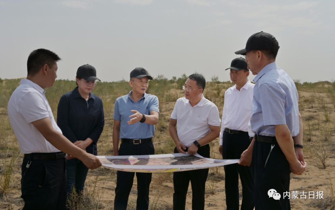8月2日,自治區(qū)黨委書記孫紹騁在阿拉善左旗境內(nèi)的騰格里沙漠百萬畝花棒基地考察防風(fēng)固沙項(xiàng)目建設(shè)情況。記者馬建荃攝