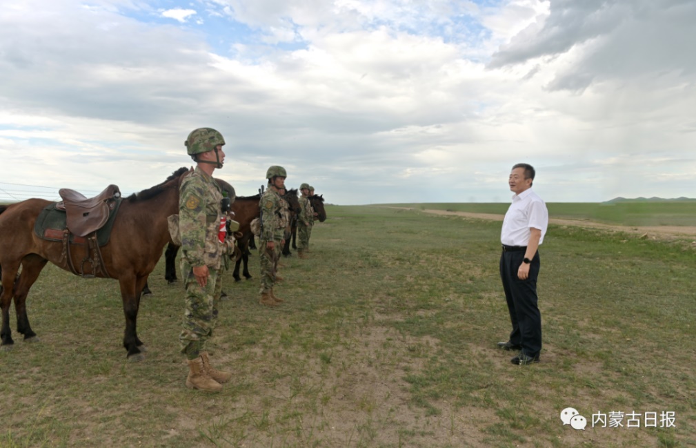 8月14日,自治區(qū)黨委書記孫紹騁在東烏珠穆沁旗邊防某旅調(diào)研邊境管控和部隊(duì)建設(shè)工作情況。內(nèi)蒙古日?qǐng)?bào)社融媒體記者 馬建荃 攝