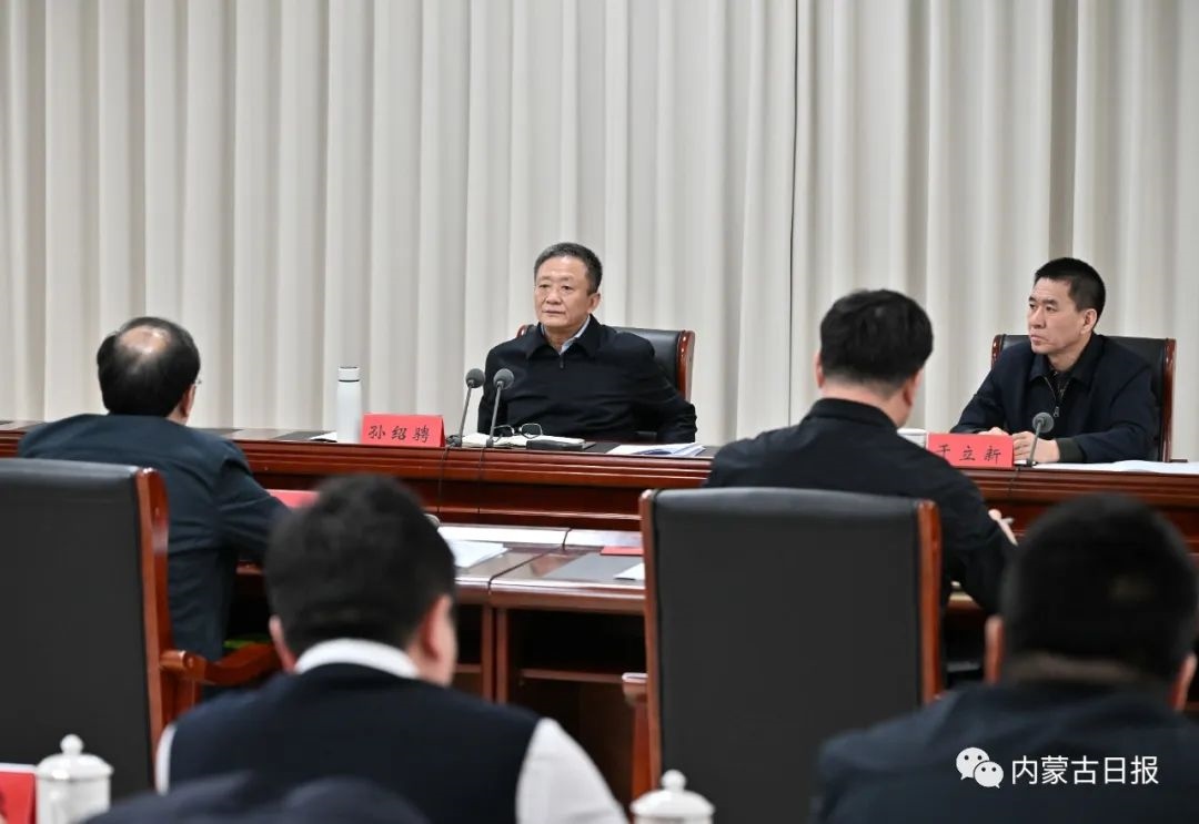 11月29日,自治區(qū)黨委書(shū)記孫紹騁聽(tīng)取巴林左旗、阿魯科爾沁旗有關(guān)情況匯報(bào),詳細(xì)了解主題教育、重點(diǎn)工作進(jìn)展情況和明年工作打算。草原全媒·內(nèi)蒙古新聞網(wǎng)記者 馬建荃 攝