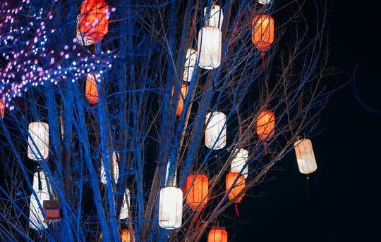 “鳳簫聲動(dòng),玉壺光轉(zhuǎn),一夜魚(yú)龍舞……”,宋代辛棄疾的《青玉案 元夕》描繪出了小草公園燈會(huì)熱鬧繁華的景象……掛滿枝頭的彩色燈籠,活靈活現(xiàn)的龍寶寶造型燈籠,薄如蟬翼的花燈籠,都寓意著風(fēng)調(diào)雨順,五谷豐登,吉祥幸福,更寄托著人們美好的愿景。