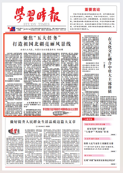 《學習時報》2024年3月6日第1版刊發(fā)全國人大代表、內(nèi)蒙古自治區(qū)黨委書記孫紹騁文章《聚焦“五大任務”打造祖國北疆亮麗風景線》。