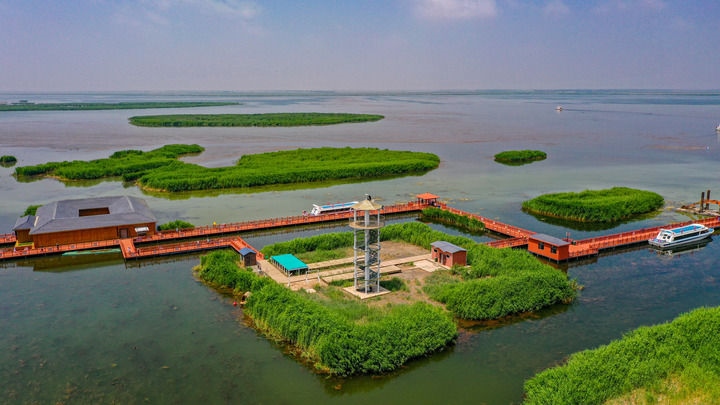 這是2023年6月19日拍攝的巴彥淖爾市烏拉特前旗境內(nèi)的烏梁素海(無(wú)人機(jī)照片)。新華社記者劉磊攝