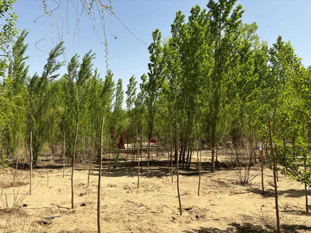 5月的河套平原萬物萌發(fā),充滿生機與希望。走進地處黃河“幾字彎”的內(nèi)蒙古自治區(qū)巴彥淖爾市臨河區(qū)新華林場,沙地里一棵棵堅韌挺拔的樹木正迎著春風(fēng),舒枝展葉,茁壯生長。