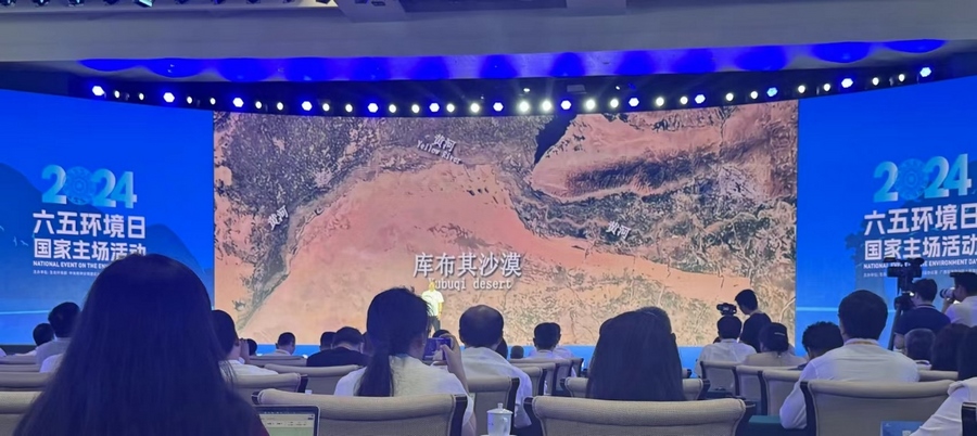 當天在廣西南寧,生態(tài)環(huán)境部、中央文明辦、廣西壯族自治區(qū)人民政府聯(lián)合舉辦了2024年六五環(huán)境日國家主場活動。建設(shè)美麗中國,是實現(xiàn)中華民族偉大復興中國夢的重要內(nèi)容。在習近平生態(tài)文明思想指引下,一個人與自然和諧共生的美麗中國正從藍圖變?yōu)楝F(xiàn)實?;顒犹貏e設(shè)立了“從這里看見美麗中國”主題展示環(huán)節(jié),從全國各地的案例中遴選了6個“美麗中國建設(shè)創(chuàng)新示范案例”,內(nèi)蒙古杭錦旗庫布其沙漠億利生態(tài)示范區(qū)“綠水青山就是金山銀山”實踐創(chuàng)新基地作為唯一的“兩山”基地案例在活動現(xiàn)場進行了展示。來自億利資源集團的庫布其治沙工程師田旺應邀參加活動,他結(jié)合親身經(jīng)歷,向全球嘉賓介紹了政府、企業(yè)、農(nóng)牧民合力治理庫布其沙漠三十多年,在生態(tài)文明思想引領(lǐng)下將“死亡之?!苯ㄔO(shè)成為生命綠洲的生動故事。