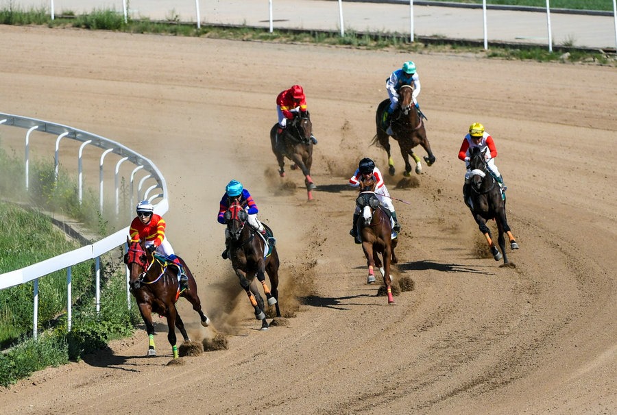 6月16日,中國速度賽馬積分賽暨內(nèi)蒙古呼和浩特速度賽馬常規(guī)賽第五個賽馬日在內(nèi)蒙古少數(shù)民族群眾文化體育運動中心開賽,當(dāng)日先后進行了3歲及以上中國出生純血馬1000米、2歲純血馬1000米、2歲中國出生純血馬1000米、無限定走馬1200米、蒙古馬2000米賽事,蒙古馬3000米六場比賽,馬背上的速度競賽和場下精彩的演出給觀眾獻上一場精彩的視覺盛宴。(記者:孟和朝魯)
