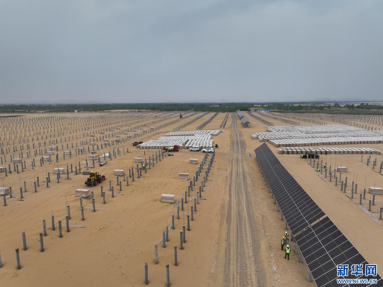 ??6月13日拍攝的翁牛特旗蒙地阿什罕光伏基地建設現(xiàn)場。新華網(wǎng)發(fā)(叢金龍 攝)