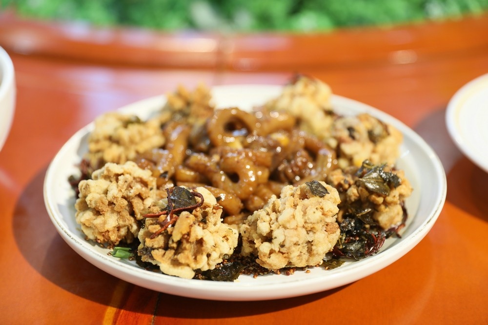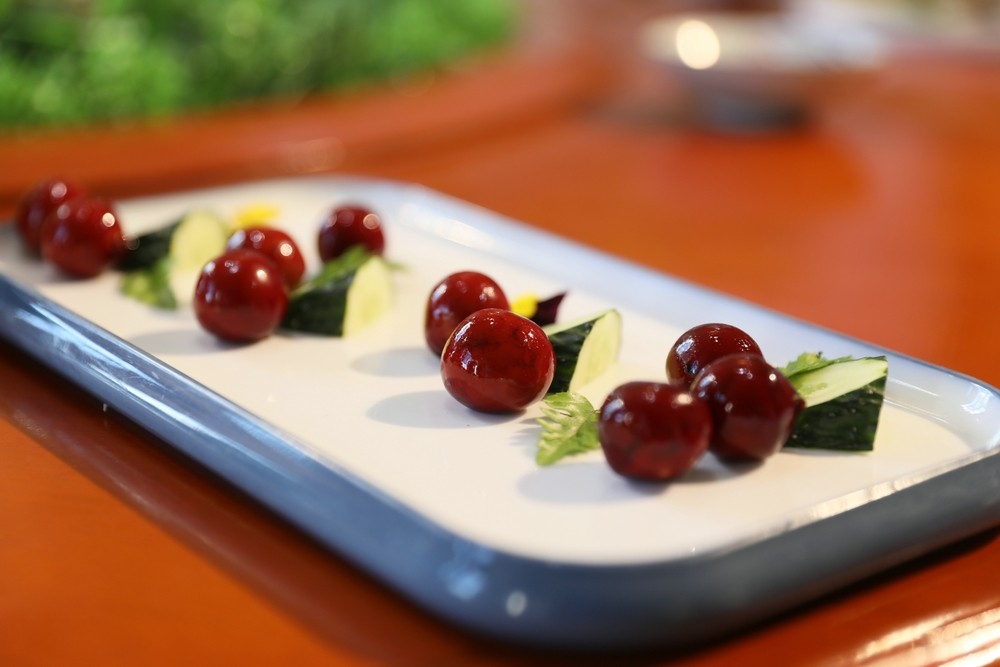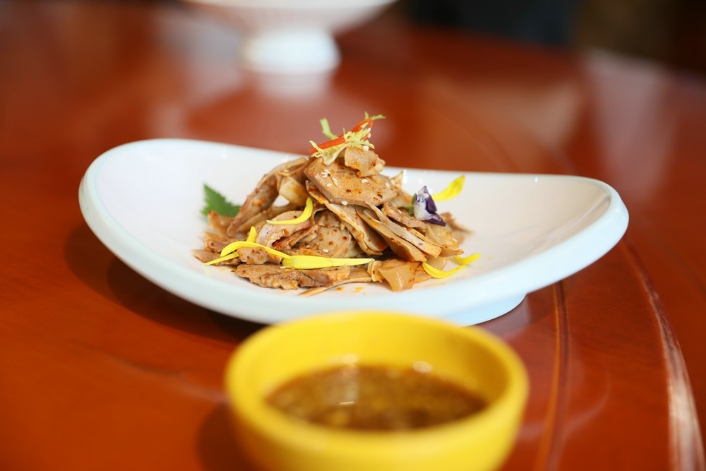 首次亮相的羊雜宴席分涼菜、熱菜、湯羹、主食等共18個(gè)菜品,包括櫻桃松露羊肝、扎蒙花拌耳舌、香辣手撕羊心、王爺精片蹄花、胡麻鹽干山尾、養(yǎng)生羊腦藜麥粥 、羊隨布拉塔番茄、草原風(fēng)味毛血旺 、松茸焗羊雜煲、茶香伴侶雙寶 、黃柿子肚絲湯 、鮮羊肝披薩餅等,而首次登上羊雜宴席的羊雜燒麥也是菜品中的一大亮點(diǎn)。伴隨著國(guó)家級(jí)烹飪大師、羊雜宴席領(lǐng)銜主廚岳俊杰的介紹,“沒(méi)想到”“好吃”之類的驚嘆成為品鑒會(huì)的高頻詞。