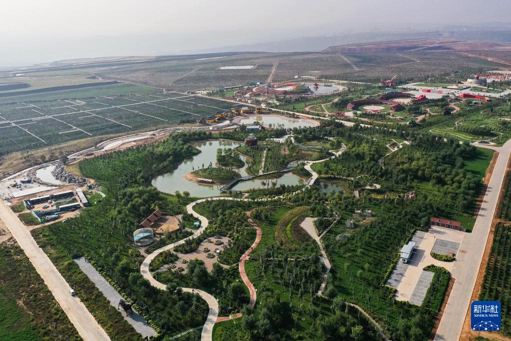 ??在位于內(nèi)蒙古鄂爾多斯市準(zhǔn)格爾旗的國家能源集團(tuán)準(zhǔn)能集團(tuán),煤礦復(fù)墾區(qū)樹木蔥蘢,已成為礦山生態(tài)旅游區(qū)(無人機(jī)照片,9月19日攝)。