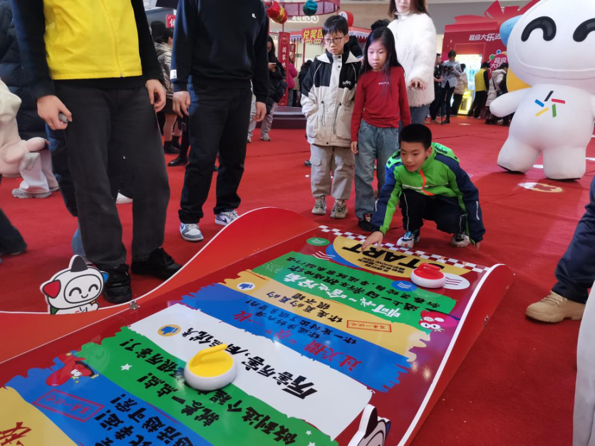在振華廣場(chǎng)新華MALL里,好運(yùn)抓抓、旱地冰壺……體彩公益展示區(qū)、游戲體驗(yàn)區(qū)、互動(dòng)娛樂(lè)區(qū)等精彩紛呈,吸引了眾多市民駐足參與。
