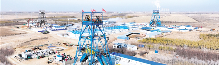 在距此90多公里的鄂托克前旗上海廟經(jīng)濟(jì)開發(fā)區(qū),能源主戰(zhàn)場的鷹駿一號煤礦項(xiàng)目建設(shè)同樣如火如荼?,F(xiàn)場大型機(jī)械來回穿梭,作業(yè)機(jī)械有序進(jìn)行著主、副礦井的井筒掘砌工作。加工車間旁,焊接師傅正聚精會神地焊著鋼板接口,現(xiàn)場一片繁忙景象。