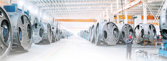 3月7日,走進(jìn)科爾沁工業(yè)園區(qū),在蒙東(通遼)風(fēng)電裝備制造產(chǎn)業(yè)基地內(nèi)蒙古龍馬鑄造有限公司精工車間里,各條生產(chǎn)線有序運(yùn)轉(zhuǎn),工人們正在進(jìn)行風(fēng)電輪轂加工、底座側(cè)鏜加工等作業(yè)?!敖衲甏汗?jié),我們只休息了兩天,從初二起,全生產(chǎn)線便滿負(fù)荷運(yùn)轉(zhuǎn),全力追趕訂單進(jìn)度?!眱?nèi)蒙古龍馬制造有限公司副總經(jīng)理時(shí)偉介紹道。