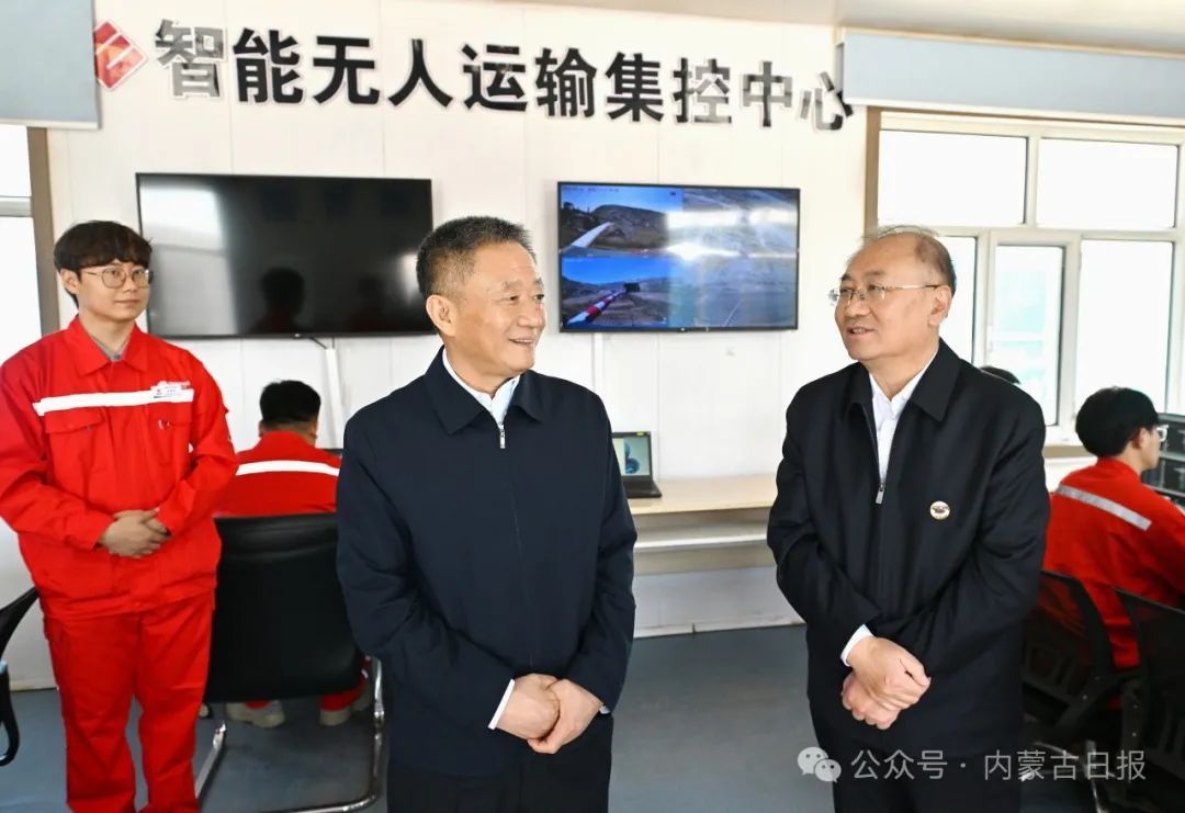孫紹騁首先來到久泰新材料公司,察看項(xiàng)目進(jìn)展和產(chǎn)品展示,了解企業(yè)生產(chǎn)經(jīng)營狀況,詢問煤化工產(chǎn)業(yè)深度發(fā)展有關(guān)情況,鼓勵企業(yè)堅持走創(chuàng)新之路,狠抓科技投入,加強(qiáng)煤炭清潔高效利用,不斷提高產(chǎn)品科技含量和附加值。在國能準(zhǔn)能集團(tuán)黑岱溝露天煤礦智能礦山建設(shè)現(xiàn)場指揮中心,孫紹騁通過實(shí)時監(jiān)控畫面察看無人駕駛卡車運(yùn)行情況,并詢問智能礦山建設(shè)成效。孫紹騁說,要大力推進(jìn)礦山智能化建設(shè),強(qiáng)化要素保障和政策支持,加快推廣無人駕駛卡車等智能裝備,提升礦山作業(yè)安全水平和生產(chǎn)效能。