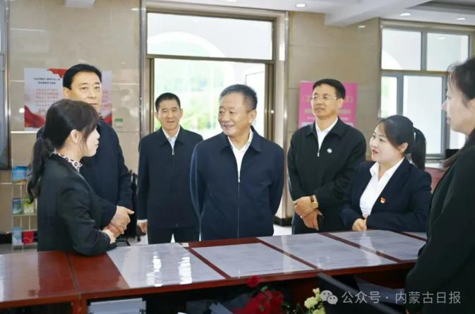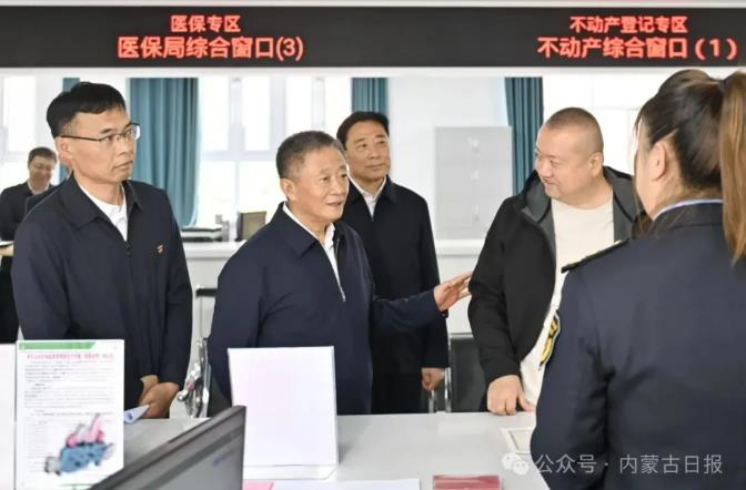 6月16日,自治區(qū)黨委書記孫紹騁來到阿爾山市政務(wù)服務(wù)和大數(shù)據(jù)中心,同辦事群眾和工作人員進(jìn)行交流,實(shí)地了解基層職能職責(zé)、減負(fù)效果等情況。草原云·內(nèi)蒙古新聞網(wǎng)記者