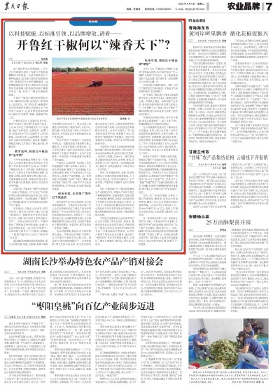 2025年9月9日,《農(nóng)民日報(bào)》第7版刊發(fā)題為《以科技賦能、以標(biāo)準(zhǔn)引領(lǐng)、以品牌增效,請看——開魯紅干椒何以“辣香天下”?》的文章,報(bào)道了內(nèi)蒙古開魯縣用“標(biāo)準(zhǔn)”這把金鑰匙,成功開啟了紅干椒產(chǎn)業(yè)品牌化、國際化的大門。未來,隨著對不同品種標(biāo)準(zhǔn)化體系的持續(xù)創(chuàng)建和完善,“開魯紅干椒”這一區(qū)域公用品牌必將在更廣闊的舞臺上綻放出更加璀璨的光芒,真正實(shí)現(xiàn)“紅映開魯,辣香天下”的愿景。