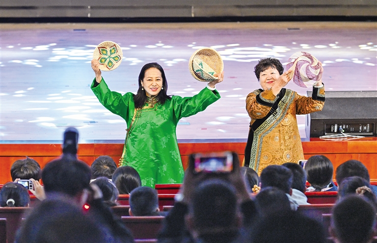 對(duì)接會(huì)設(shè)在北京一零一中學(xué)圓明園校區(qū),現(xiàn)場(chǎng),內(nèi)蒙古特色非遺、歌舞表演異彩紛呈,鮮活展現(xiàn)絢爛多彩的北疆文化。北京交通大學(xué)現(xiàn)代旅游研究學(xué)院院長(zhǎng)張輝作“研學(xué)旅游高質(zhì)量發(fā)展”主旨演講。自治區(qū)文旅廳發(fā)布了2025年研學(xué)旅游新品,重磅推出深度融合內(nèi)蒙古的自然地理、歷史文化、科學(xué)技術(shù)與民族風(fēng)情的4條主線、20條支線的研學(xué)旅行路線,還系統(tǒng)推出一批具有地域特色與文化內(nèi)涵的精品主題研學(xué)旅游產(chǎn)品,全方位展示了內(nèi)蒙古研學(xué)旅游的獨(dú)特魅力和發(fā)展?jié)摿?。?nèi)蒙古藝術(shù)劇院烏蘭恰特藝術(shù)培訓(xùn)中心推介了北疆文化藝術(shù)研學(xué)產(chǎn)品;中國(guó)鐵路呼和浩特局發(fā)布京蒙研學(xué)旅游專列計(jì)劃,并進(jìn)行京蒙兩地研學(xué)公司客源互通簽約儀式;中國(guó)旅游協(xié)會(huì)研學(xué)旅行分會(huì)與內(nèi)蒙古自治區(qū)旅游協(xié)會(huì)進(jìn)行合作簽約?;顒?dòng)還設(shè)置“少年那達(dá)慕”互動(dòng)體驗(yàn),吸引不少青少年現(xiàn)場(chǎng)打卡體驗(yàn)北疆文化。“內(nèi)蒙古是一個(gè)自然與人文交織的遼闊課堂,期待走進(jìn)內(nèi)蒙古,用腳步丈量、用心靈感受內(nèi)蒙古?!北本┙逃龑W(xué)院豐臺(tái)分院附屬學(xué)校學(xué)生高晟恩說(shuō)。